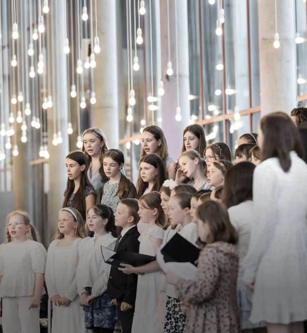 På scenen står Edvard Grieg Ungdomskor, Edvard Grieg Guttekor, Edvard Grieg Jentekor og Øygarden Kulturskulekor.